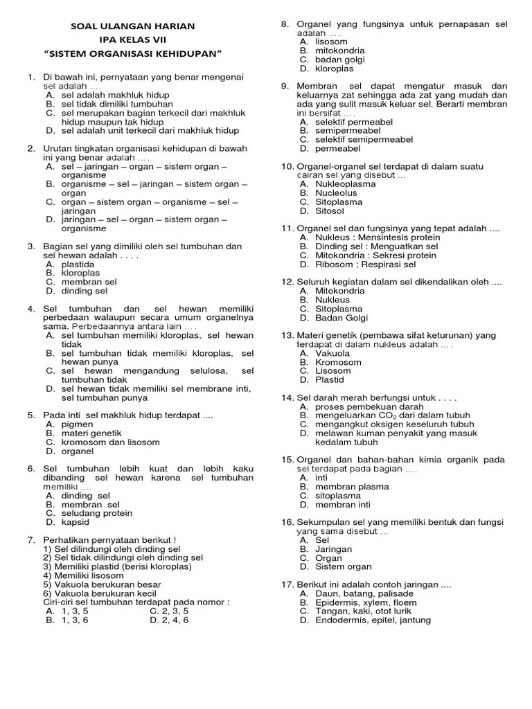 Makhluk hidup bersel satu dapat hidup mandiri. Pembahasan contoh soal ipa kelas vii smp/mts bab 4 sistem organisasi kehidupan. Berikut video pembahasan soal latihan sistem organisasi kehidupan (pelajaran ipa kelas 7 semester 2 kurikulum 2013)dalam video ini hanya . Berikut ini masharist.com membagikan latihan soal ipa sistem organisasi kehidupan makhluk hidup kelas 7 smp kurikulum . Rangkuman materi organisasi kehidupan kelas 7 tingkat smp.